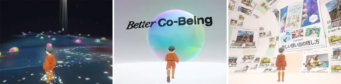 Better Co-Beingバーチャルパビリオンは、Web3技術を活用し、多様な来場者の「新しい想い出の残し方」を提案し、社会に実装する起点となることを考えています。
